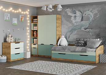 Шкаф RICH ШК-004 (Дуб Крафт золотой/Пастельный зеленый/Сумеречный голубой), Стиль