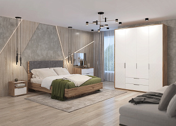 Кровать Николь 01.6К с ПМ 1800 (Дуб Альпийский/Белый), Алисия