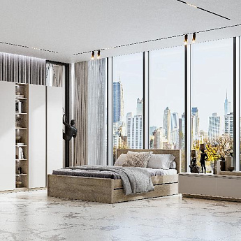Спальня Этна (Дуб Эндгрейн/Алебастр), FI, Компоновка 1