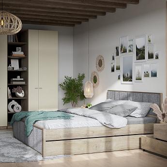 Спальня Этна (Дуб Эндгрейн/Кашемир), FI, Компоновка 1