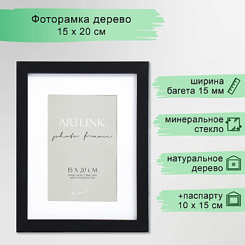 Фоторамка МДФ 15x20см, с паспарту, чёрный