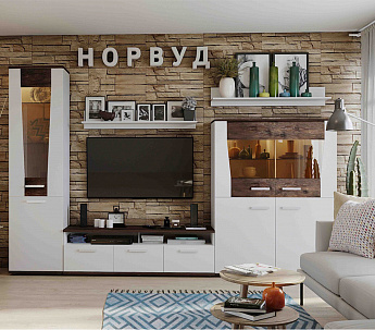 Гостиная Норвуд комплект 1(Белый/Орех шоколадный), ГМФ