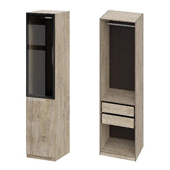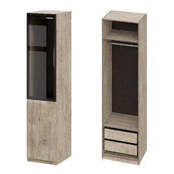 Шкаф Этна 57*50 (Эндгрейн Лак/Стекло/Дуб Эндгрейн), Компоновка 1
