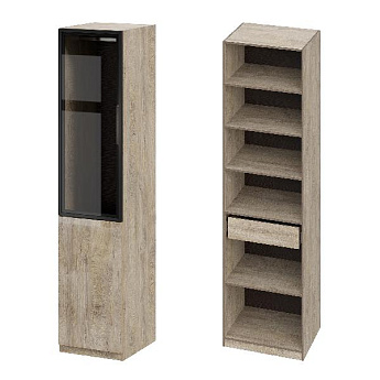 Стеллаж-1 Лайт, Дуб Сонома с 4 Фасадами Лайт, Серый