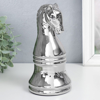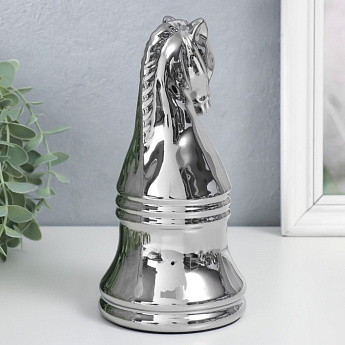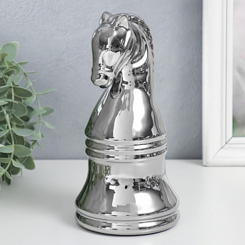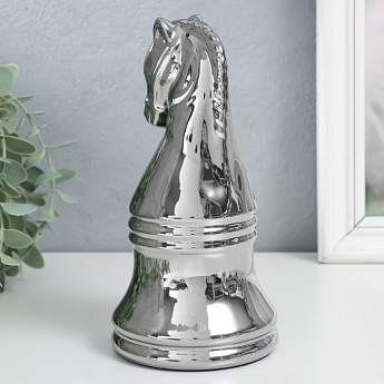 Сувенир керамика "Шахматная фигура. Конь" серебро 20,5х10х10см/7812386
