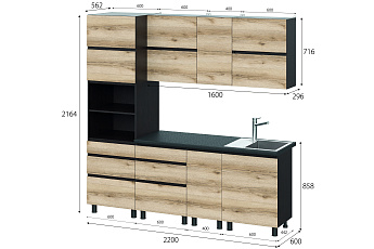 Кухонный гарнитур Берген (Дуб делано/Дуб венге), 2200 мм (1)