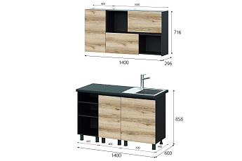 Кухонный гарнитур Берген (Дуб делано/Дуб венге), 1400 мм (1)