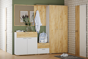 Шкаф для одежды Санти НМ 040.42 (Белый Фасадный/Дуб Крафт Золотой)