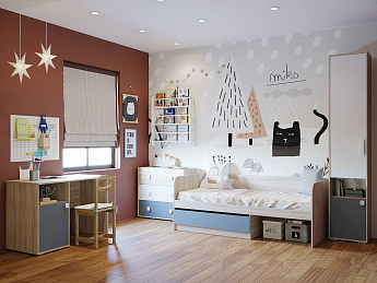 Шкаф-пенал МОРТИ НМ 041.13 (Белый/Дуб Бунратти/Серый) МФ Сильва