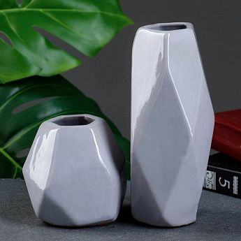 Набор кашпо с вазой "Геометрия" цв.серый/7819126