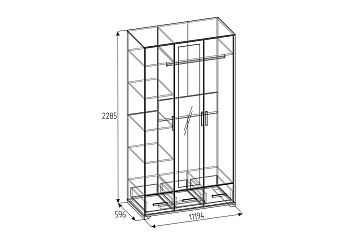 Стеллаж-3 Лайт, Каштан Венге с 2 Фасадами Лайт, Дуб сонома