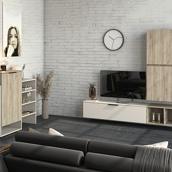 Гостиная Бохо (Дуб Крафт серый/Кашемир), Стиль, Компоновка 2