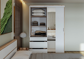 Шкаф для одежды и белья Айрис 444 (Белый/Дуб золотистый), ГМФ