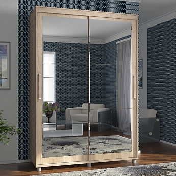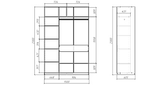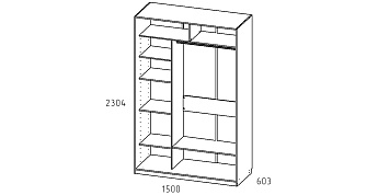Шкаф-купе Слим 150х60х230 (Дв-Бл, (зерк, Бл-Дв), Ч), МАМА