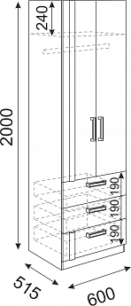 Шкаф для одежды и белья Айрис 555 (Антрацит/Креатель), ГМФ