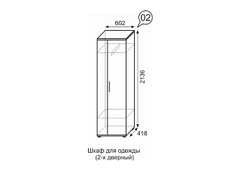 Шкаф для одежды 2-х дв. Noto 02 (Дуб табачный/Черный), Иж