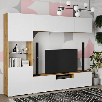 Стенка СТЕНФОРД НМ (Дуб Крафт золотой/Белый), Стиль