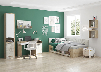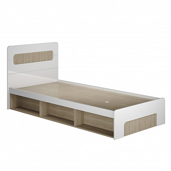 Кровать Палермо-3_Ю КР-001 с ПМ (900х2000) (Ясень Шимо светлый/Белый глянец), Стиль