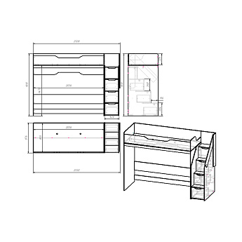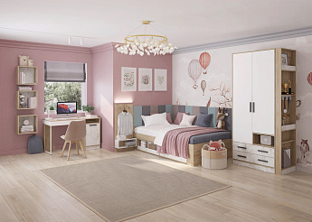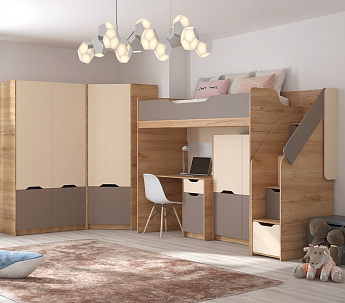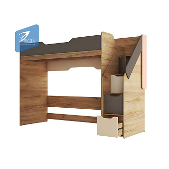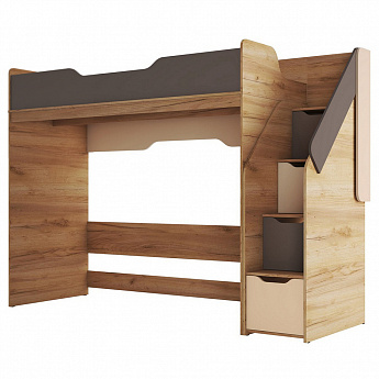 Кровать-чердак RICH КР-001 (800х2000) (Дуб Крафт золотой/Миндаль), Стиль