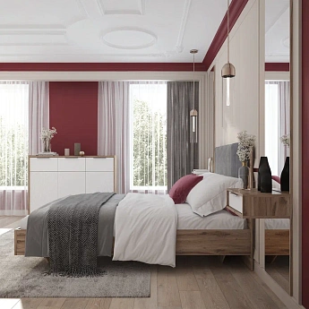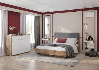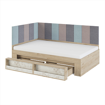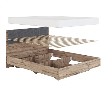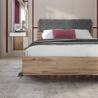 Николь 01.1М Кровать 1,4 с мягким элементом (1400х2000) (Дуб Альпийский/Серый), ALICIA