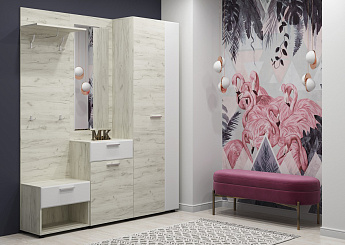 Шкаф с выдв. штангой САФАРИ ШК-001 (Дуб Крафт белый/Белый), Стиль